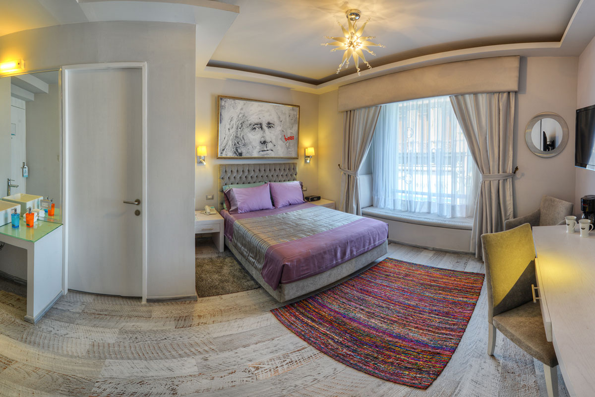 Hotel Andante comisionó a 31 artistas contemporáneos poblanos para que reinterpretaran a cada uno de los genios musicales a quienes se les rinde homenaje en cada una de las 19 suites, el resultado es un maridaje de música, formas y color sin igual. Esta es la habitación dedicada a Franz Liszt, intervenida por el artista plástic0 Francisco Álvarez Bauza.